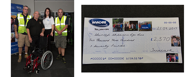 “We managed to raise a staggering £2,370 for this extremely worthy charity, but this wouldn’t have been possible without the amazing generosity of all the staff at Invacare, our customers and suppliers – a huge thanks go to all who helped and supported this cause, your efforts are greatly appreciated” commented Sharon Jones, Invacare UK who organised the fundraising.